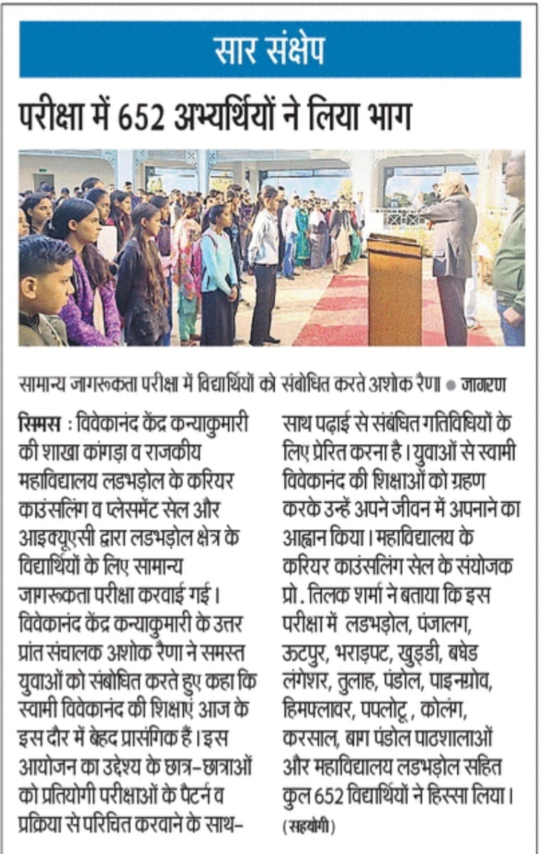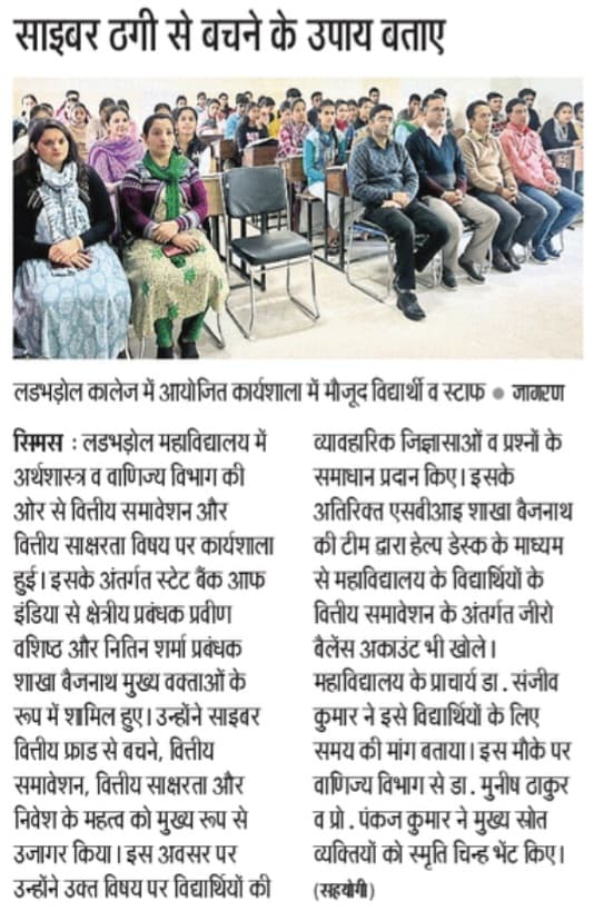राजकीय डिग्री कॉलेज लड भड़ोल में प्रवेश प्रक्रिया शुरू